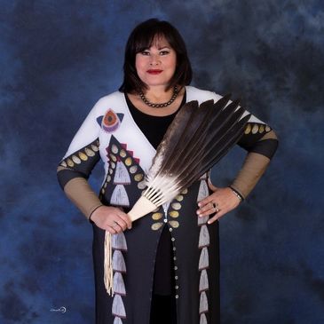 Dr. Pamela Lyles is a painter and craftsperson with ancestors from Potawatomi and Cherokee tribes. Her paternal great, great, great grandmother shared stories about her experiences on the Trail of Tears. This background influenced the subject matter of Lyles’ painting, including eagles, wolves, healers, children in ceremonial dress, and images of wise women. Pamela has a doctorate in Education Administration and has decades of experience teaching textiles and painting in Abilene, Texas and on the Navajo Reservation in Pinon, Arizona.